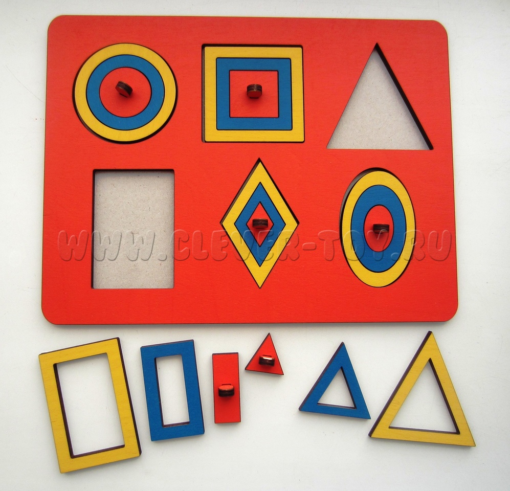 Рамки - вкладыши помогут изучить геометрические фигуры, размер (большой-маленький), разовьют глазомер и координацию движений рук. Рамки можно обводить на бумаге и раскрашивать, составляя различные узоры и орнаменты.