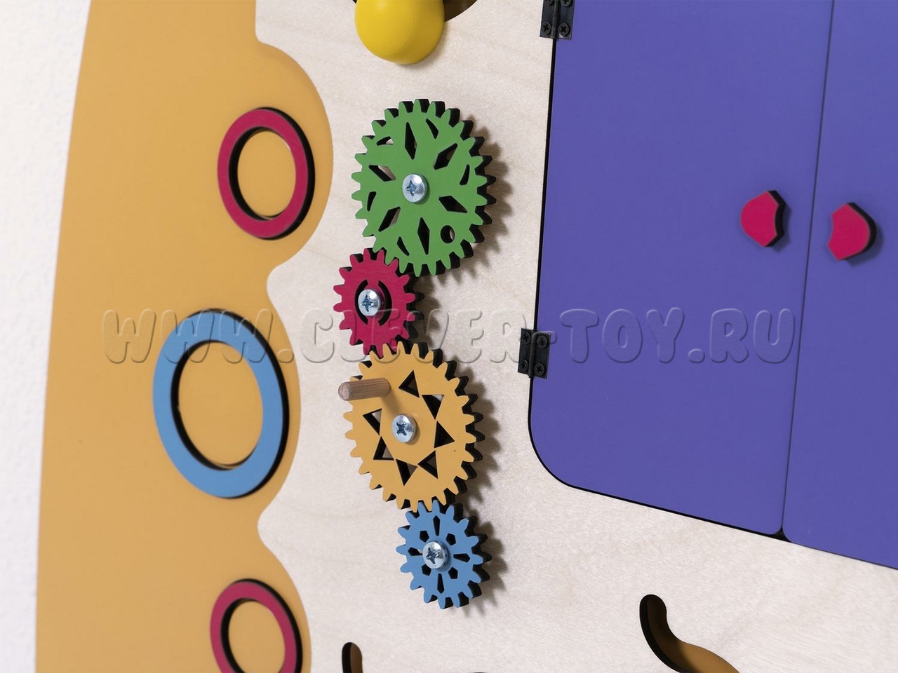 Бизиборд "Гвазго" предназначен для детских образовательных учреждений и помогает изучать геометрические фигуры (форму, количество углов, вид, цвет и особенности). Задания составлены по принципу "от простого к сложному". Например, при изучении геометрических фигур можно тренироваться в счёте, определяя количество углов. Также можно рисовать запомнившиеся фигуры или играть в крестики-нолики, вращая фигуры.