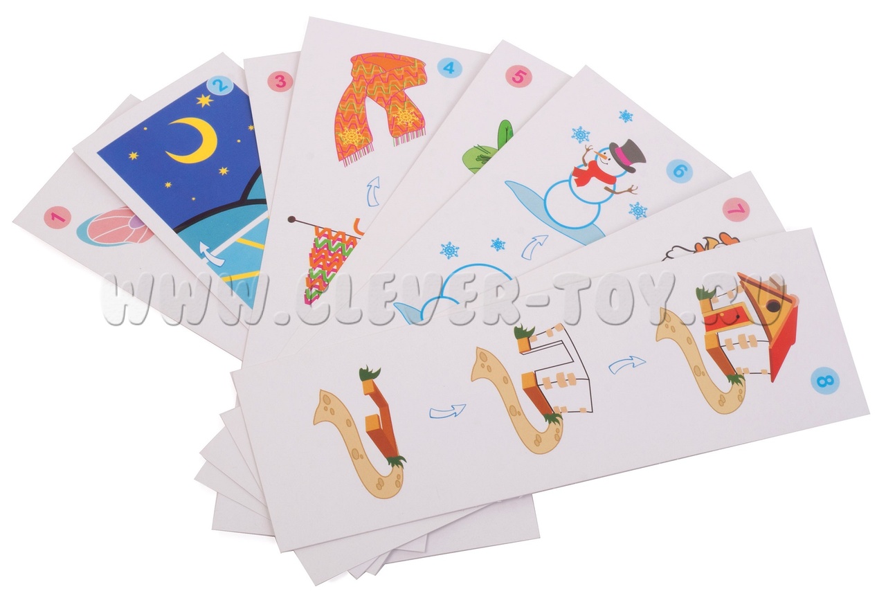 Как играть? Выбираем любую карточку с заданием (всего предложено 8 вариантов), устанавливаем её в специальную прорезь в подставке.