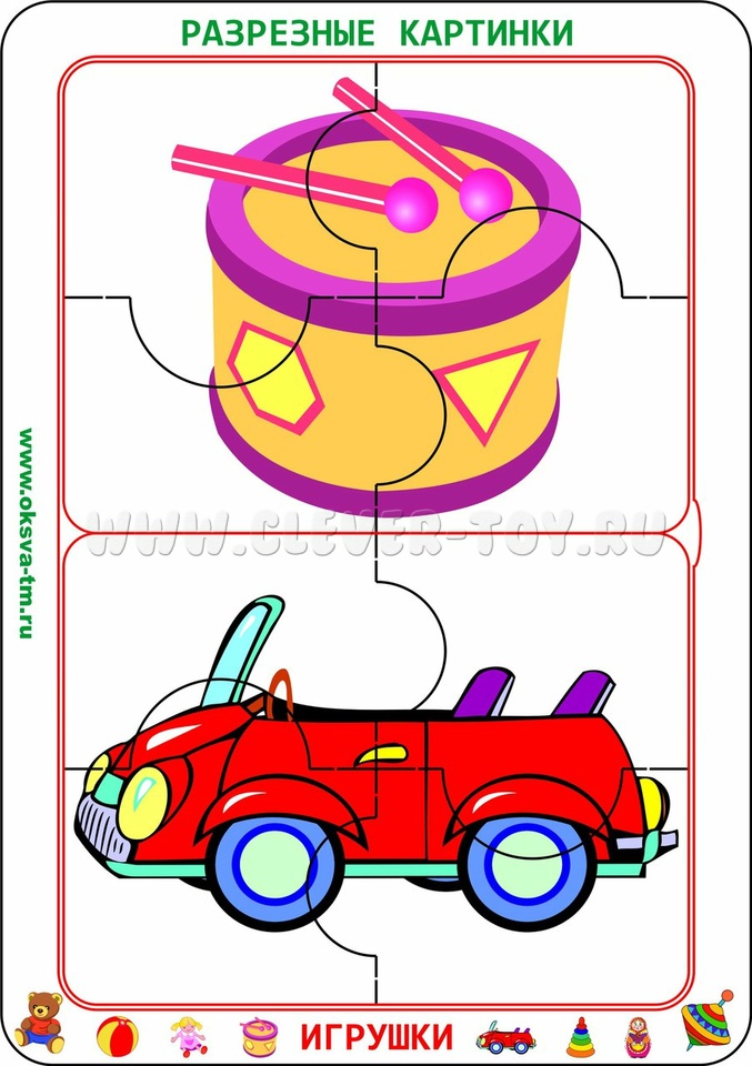 На каждой из частей есть детали изображения, по которым можно подобрать к ней недостающую часть. Частей без деталей рисунка нет.