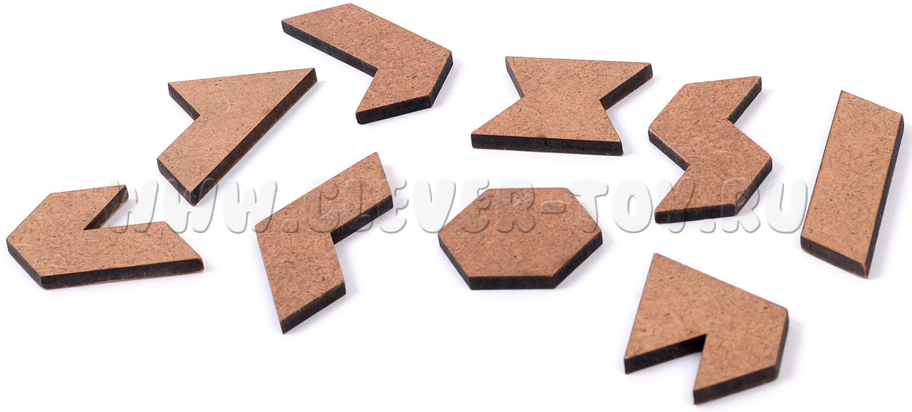 1. Задача на упаковку. Выложите элементы на стол. Затем разместите все 9 игровых элементов внутри шестигранной коробочки.