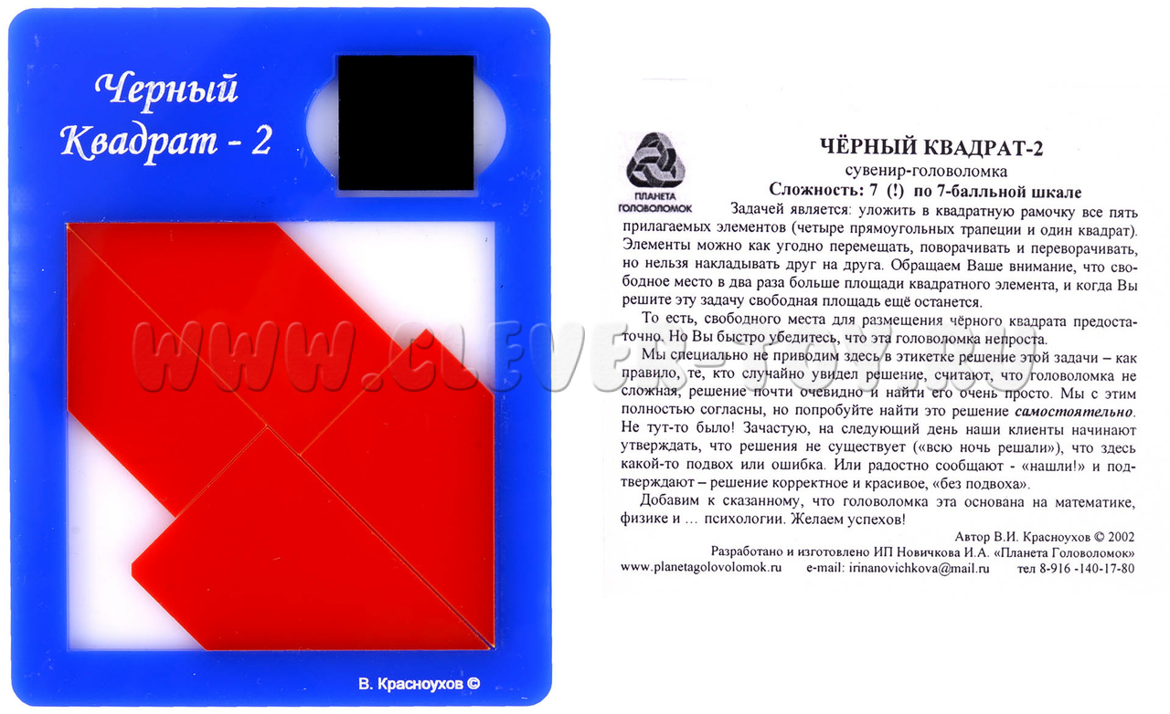 "Черный квадрат 2 (элит)" будет интересен людям любых возрастов (детям от 6 лет). Это прекрасный сувенир и подарок для любителей и профессионалов, для тех, кто любит интеллектуальные развлечения.