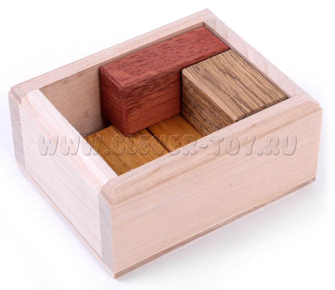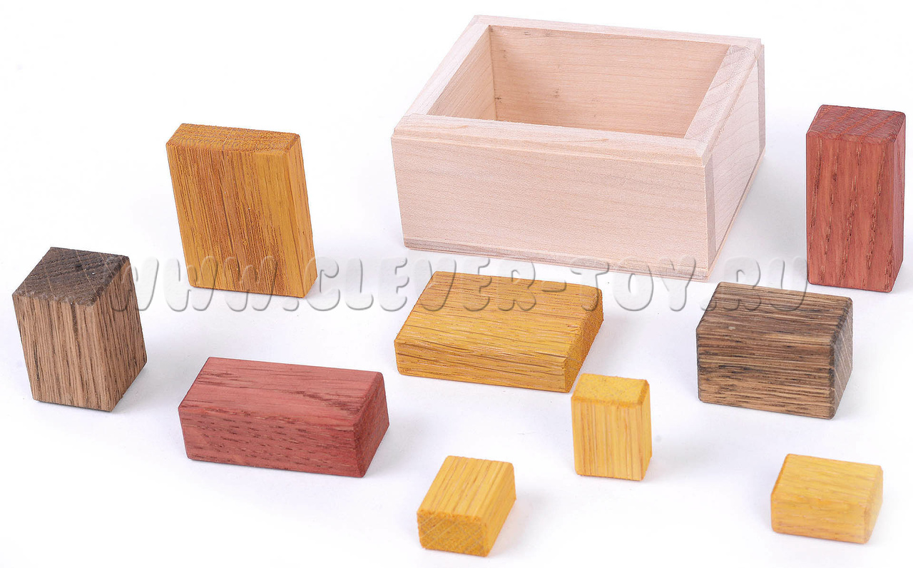 "Недетские кубики" – головоломка, в которой нужно уложить 9 брусочков в ящик таким образом, чтобы они все поместились. Кажется, задача простая, но на практике это не так. В процессе решения приходится многократно менять расстановку брусочков, перепробовать множество комбинаций, чтобы найти правильное решение.