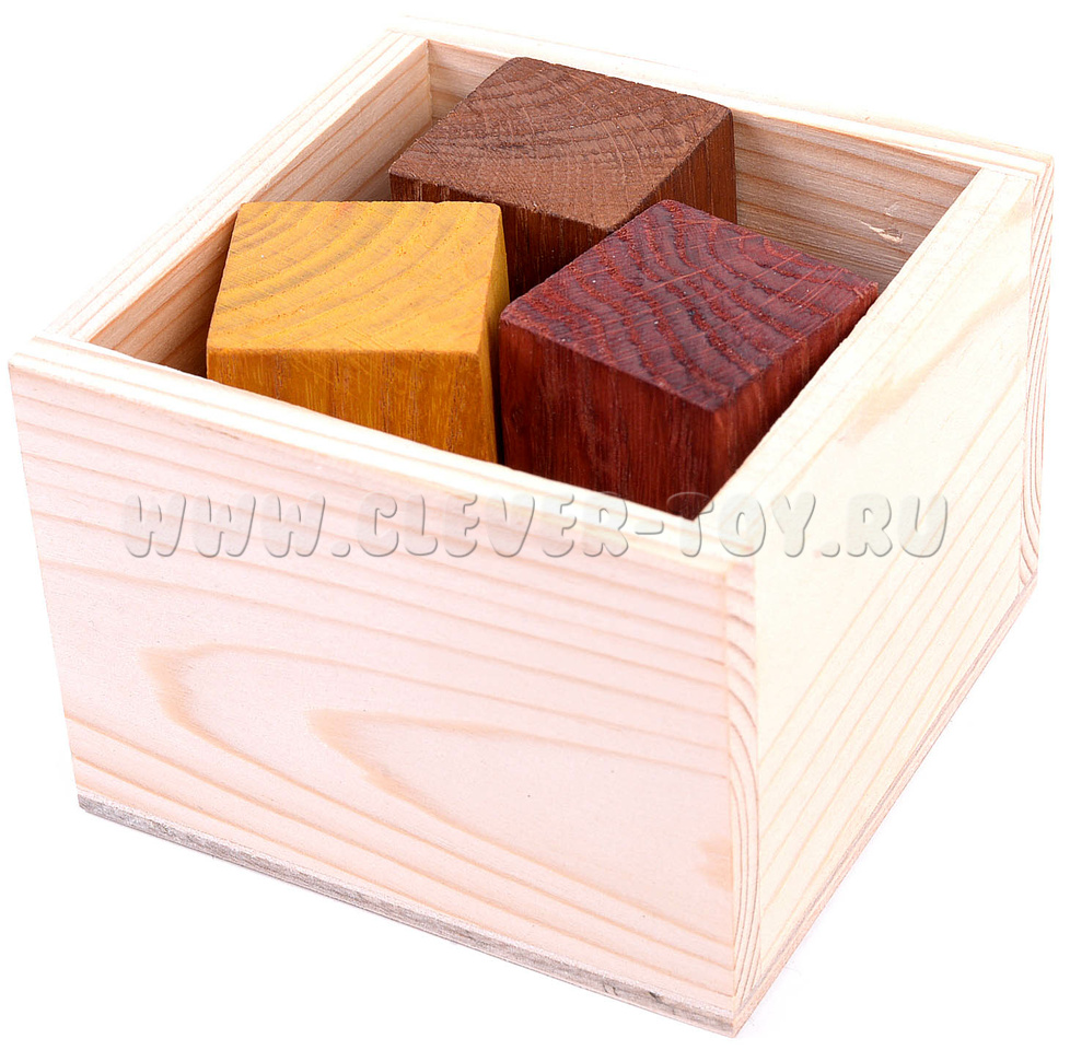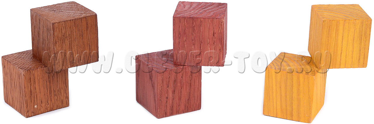• 3 элемента из дерева разных оттенков, каждый элемент это два склеенных кубика.