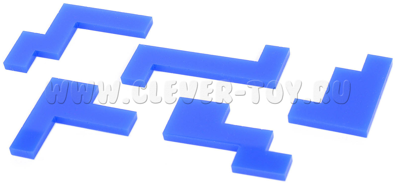 • 5 элементов, представляющих собой фигуры из склеенных прямоугольников, так называемые "октомино"; один из элементов находится в отдельном окошке, именно его и предстоит "встроить" в рамку.