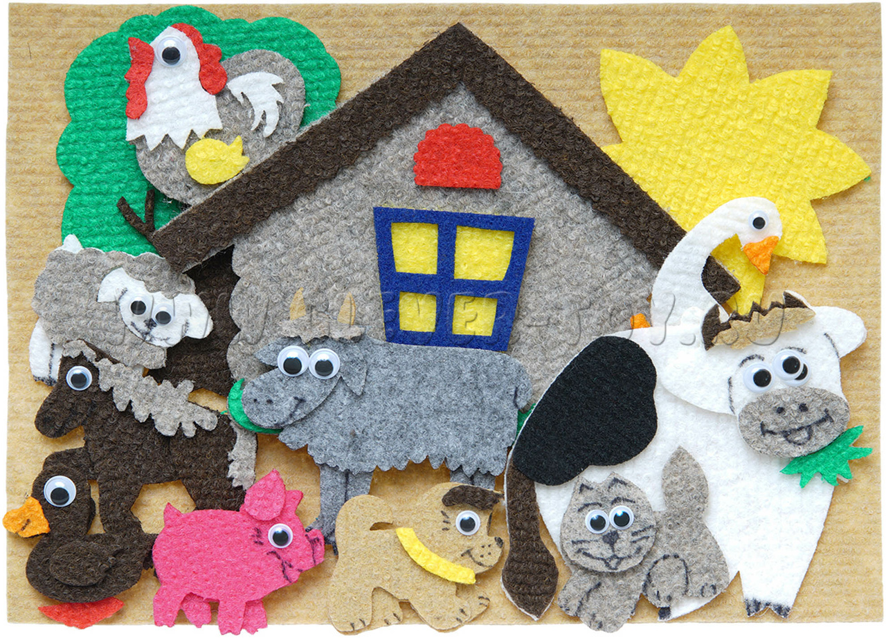• 10 фигурок животных - собака, лошадь, петух, гусь, утка, свинья, коза, овца, корова, кот,