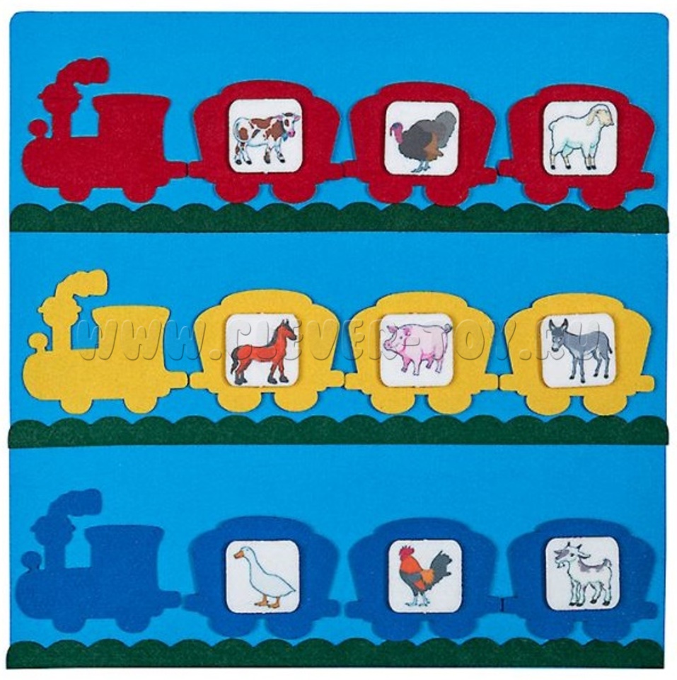 3. Изучайте понятия "верх" - "низ", "справа" - "слева". Например, "Помести корову в верхний левый вагон, а ослика в нижний правый". Это упражнение также учит работе по речевой инструкции.