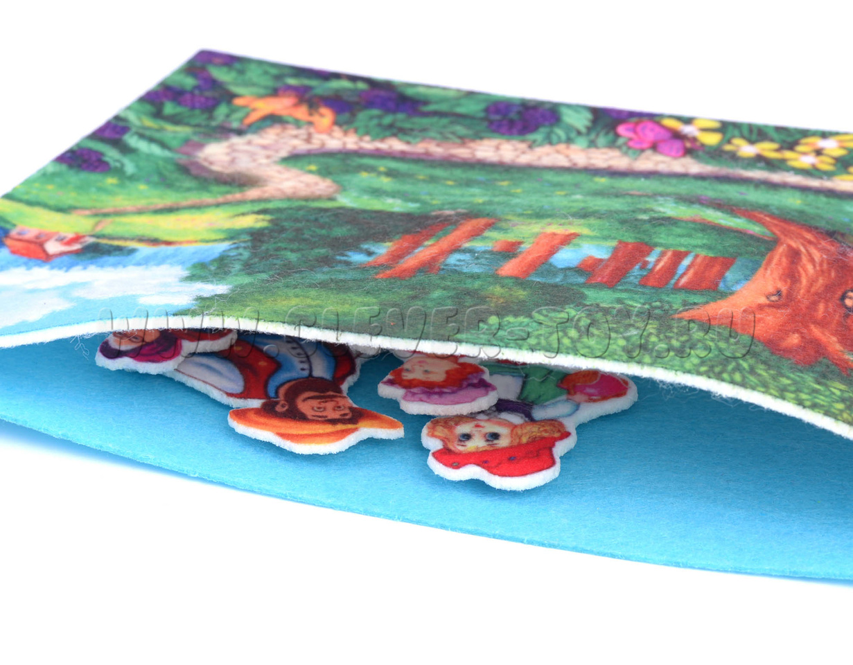 Игровое пособие выполнено из фетра и сделано в виде кукольного театра. Дети с удовольствием займутся постановкой собственной сказки. Яркие и красочные фигурки легко прилипают к игровому полю, не рвутся и не мнутся. Часть деталей выполнены вручную и имеет полное сходство с оригинальными нарисованными персонажами.
