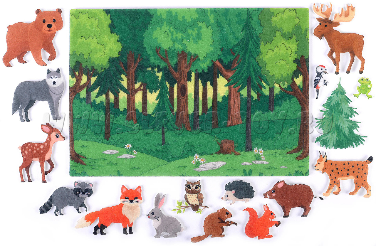 Лесные животные с игровым полем (фетр)