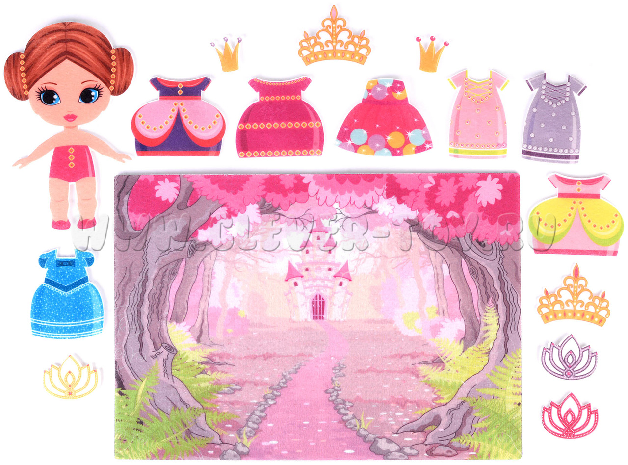 Игра подойдет девочкам в возрасте от 2 до 7 лет. Выполнена из фетра на специальном станке, очень реалистична и детализированная. Материал игрушки не испортится даже после долговременного использования, а еще липучки многоразовые и будут держаться крепко даже после частых эксплуатаций.