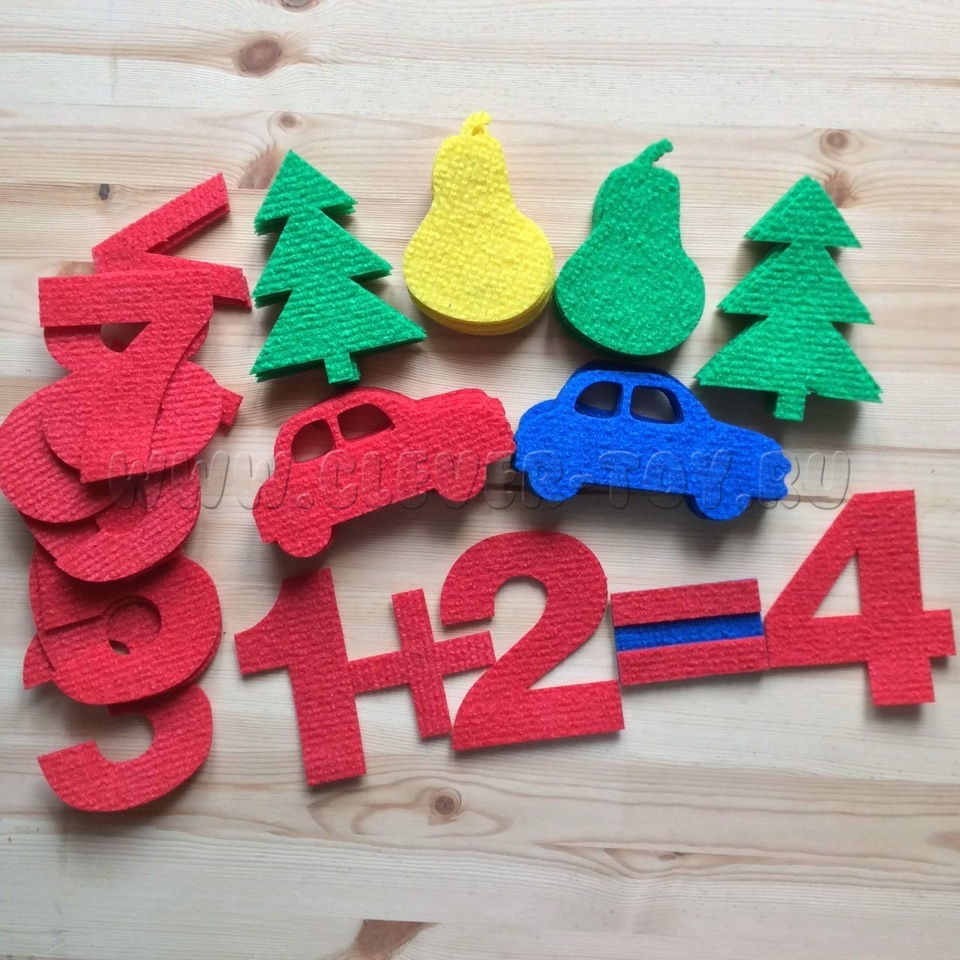 Пособие из яркого ковролина «Счётный материал» помогает: