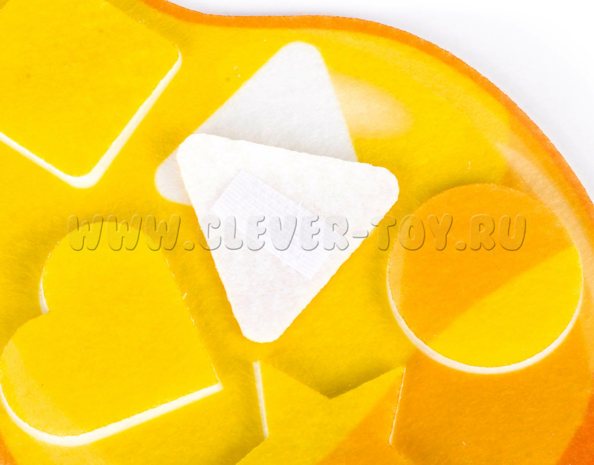 • маленькие фигурки на липучках, звезда, треугольник, квадрат, круг и сердце (по 5 фигур на каждый фрукт).