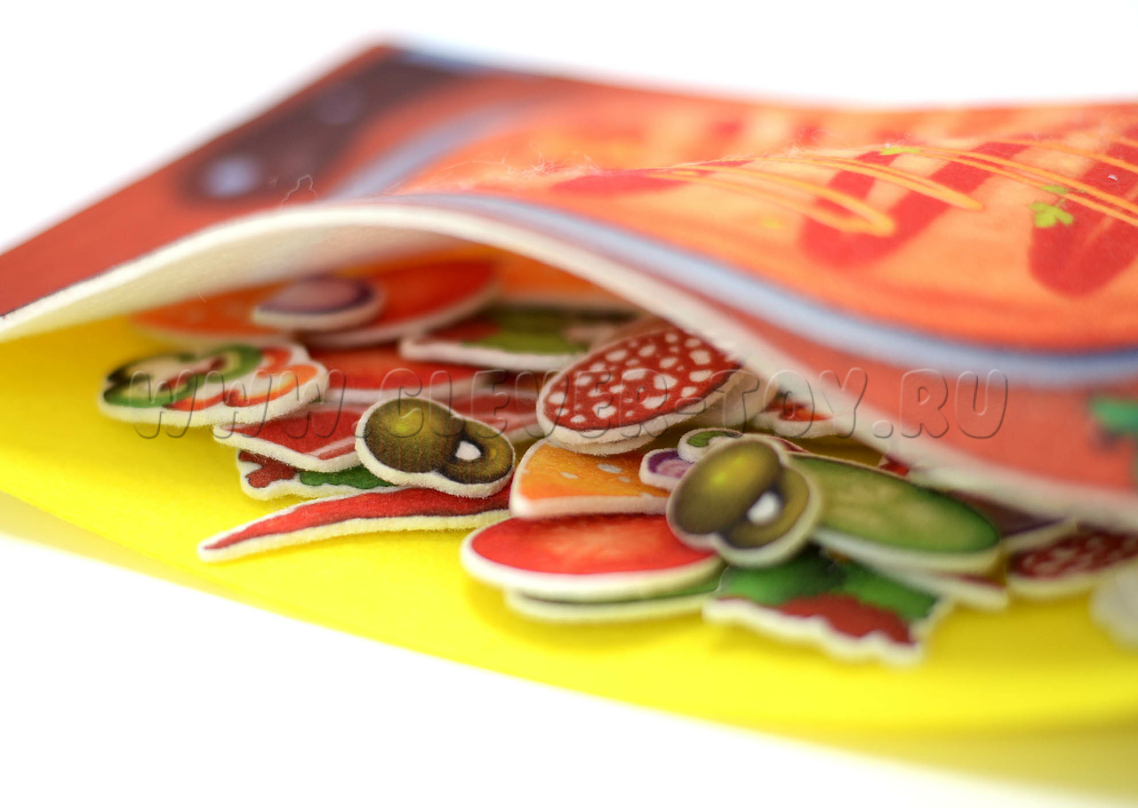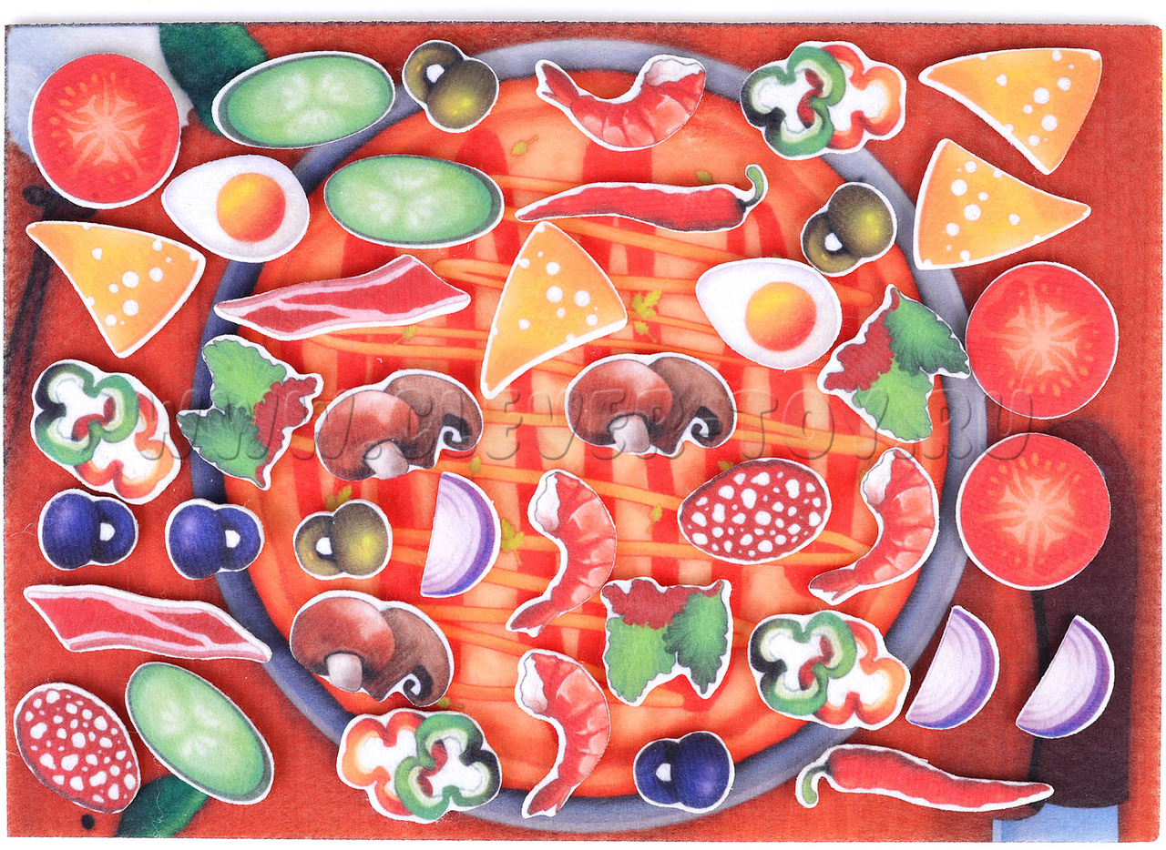 Детское игровое пособие сделано из фетра в виде аппликации и способное увлечь ребенка в мир увлекательной игры. Благодаря конструктору ребенок сможет побыть в роли кулинара и самому решить из чего будет создана его пицца. Игра сделана из безопасных и прочных материалов, которые не испортятся в процессе игр. Часть деталей выполнены вручную и имеет полное сходство с прототипами.