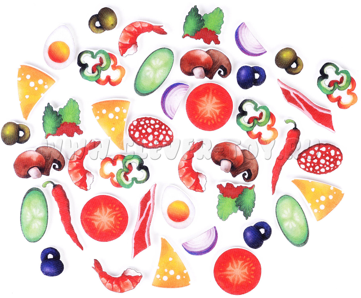 Размер игрового поля: 28х19,5 см Размер ингредиентов: от 2,5 до 6 см