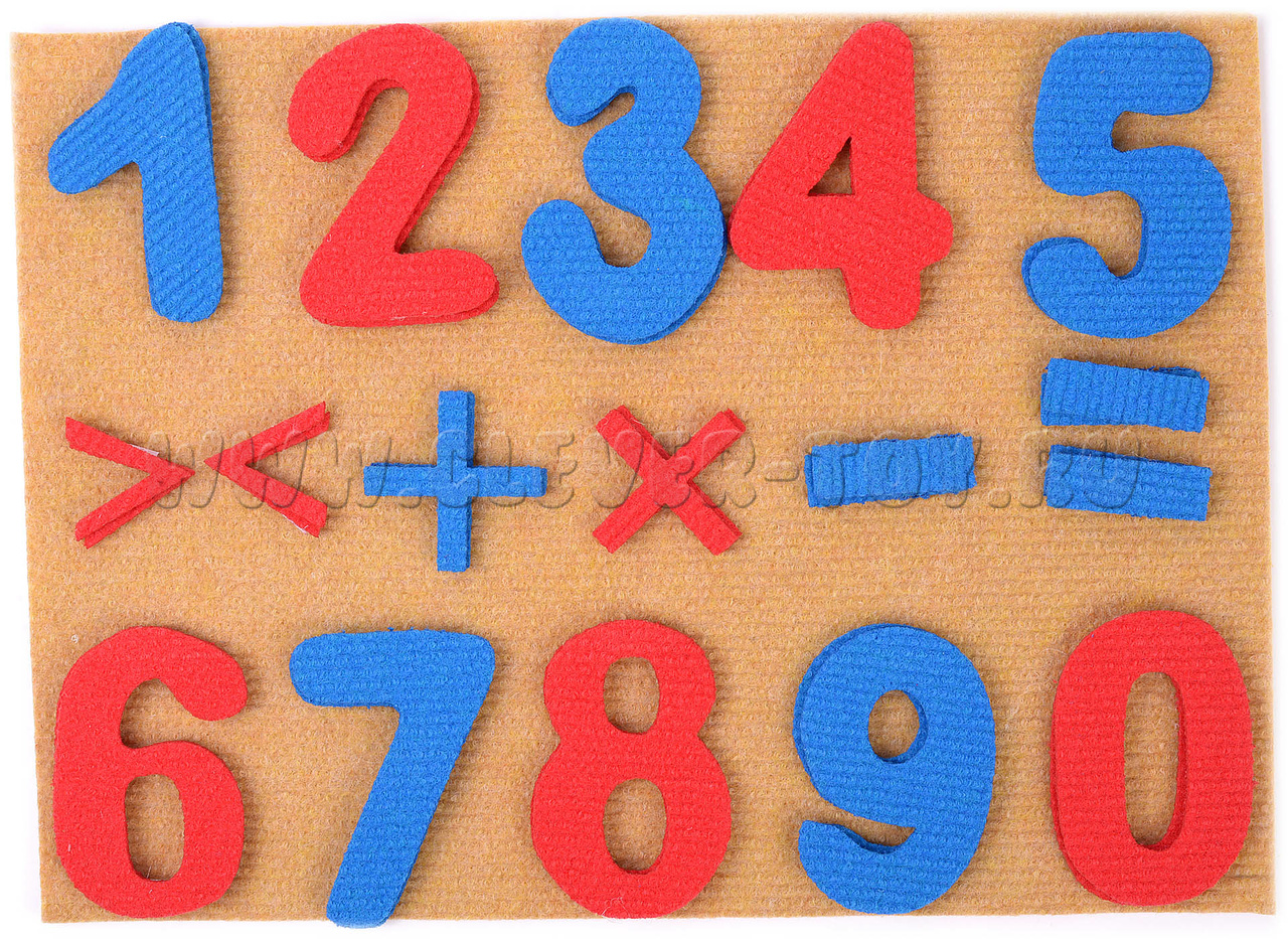• математические знаки – 14 штук – плюсы, минусы, знак равенства, знаки «больше», «меньше»,