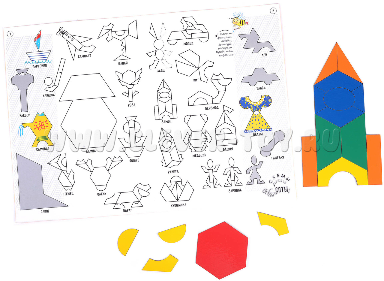 Плоскостной конструктор для раннего развития детей. «Чудо-соты» легко превращаются в различные фигуры и оригинальные предметные силуэты: человечки, предметы одежды, технику, растения, домики, зверей и т.д. В «Чудо-сотах» заложены бесконечные возможности для творчества.