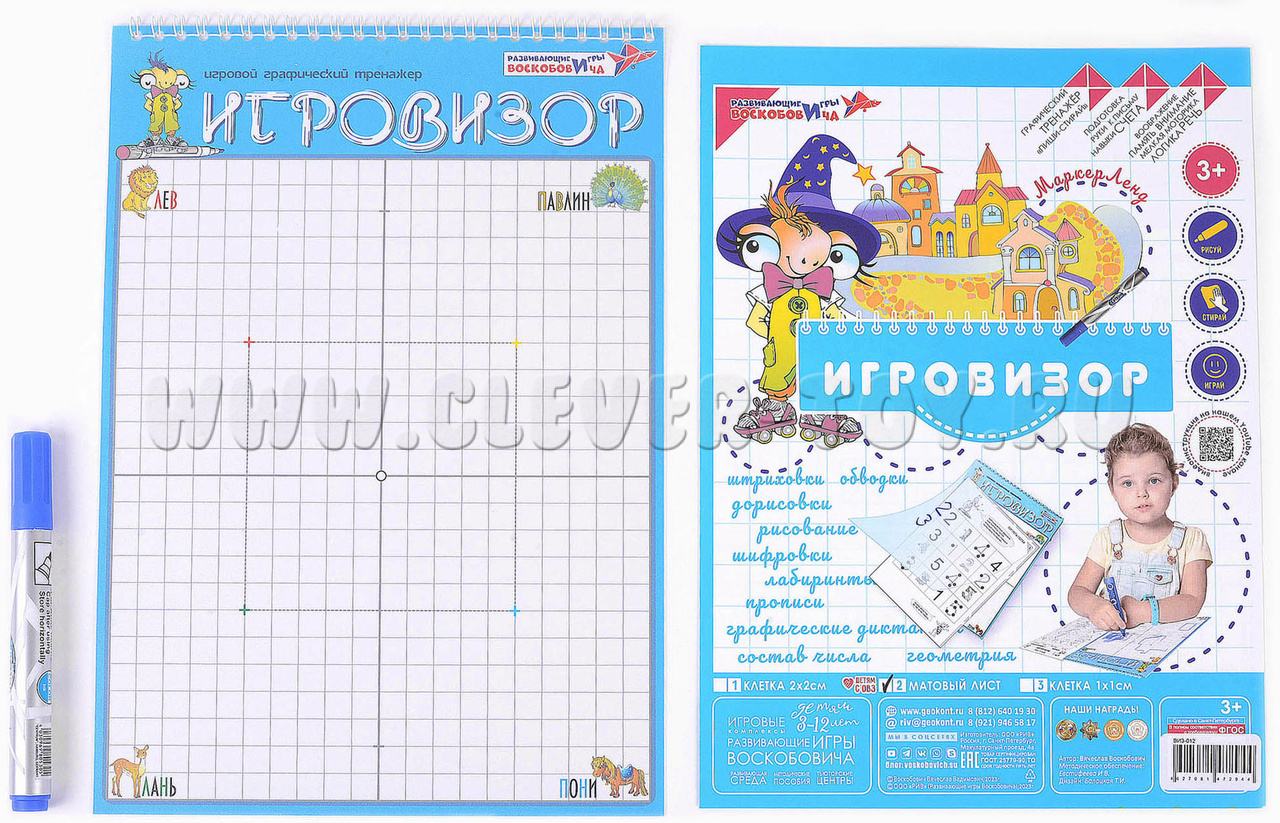 Графический тренажёр (с функцией пиши-стирай) для обучения, детского творчества и досуга. Вечный экран так можно назвать верхний прозрачный лист этого альбома. Любой маркер на водной основе оставляет на нём след, который можно легко стереть салфеткой.