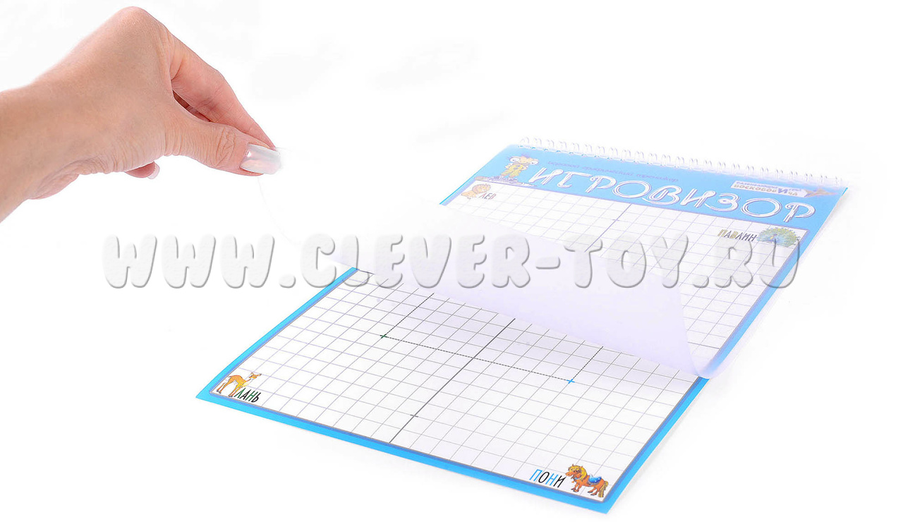 1. Картонная основа (цв. печать, разлинована на клетки1х1см, формат А4), верхний лист матовый пластик на переплётной пружине - 1шт.;