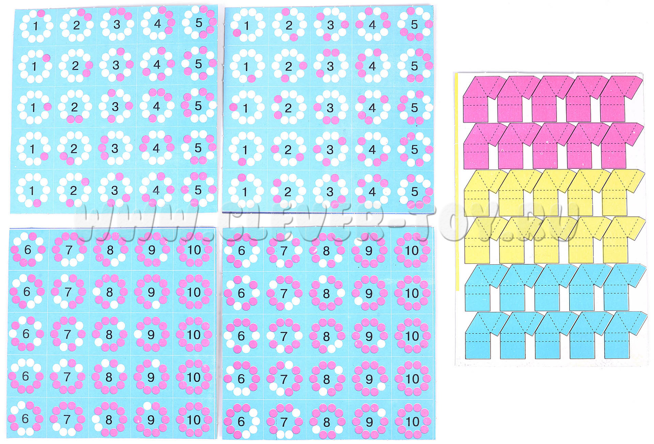 - Карточки движения – получаются в результате разрезания 4 блоков с шариками и цифрами по белым линиям. Всего их 100.