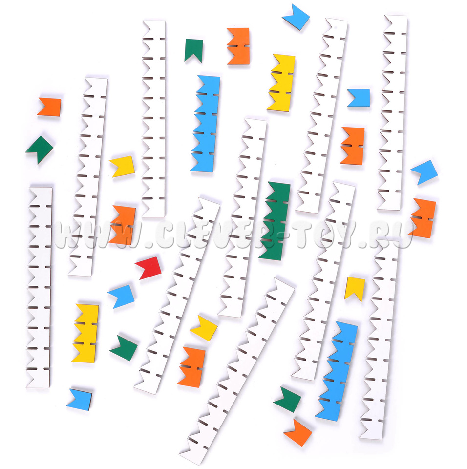 • группы флажков (фанера) – 20 шт. (белые флажки – десятки 10 шт., синие флажки – пятёрки 2 шт., зелёные флажки – четвёрки 1 шт., жёлтый флажки – тройки 2 шт., оранжевые флажки – двойки 5 шт.);
