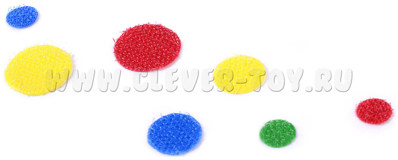 • кружки из контактной ленты 5 цветов (красный, жёлтый, зелёный, синий, белый), 3-х размеров (диаметр 10,15,20 мм) – 75 шт.,