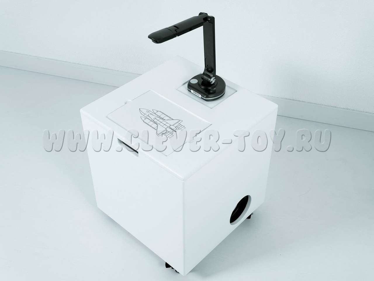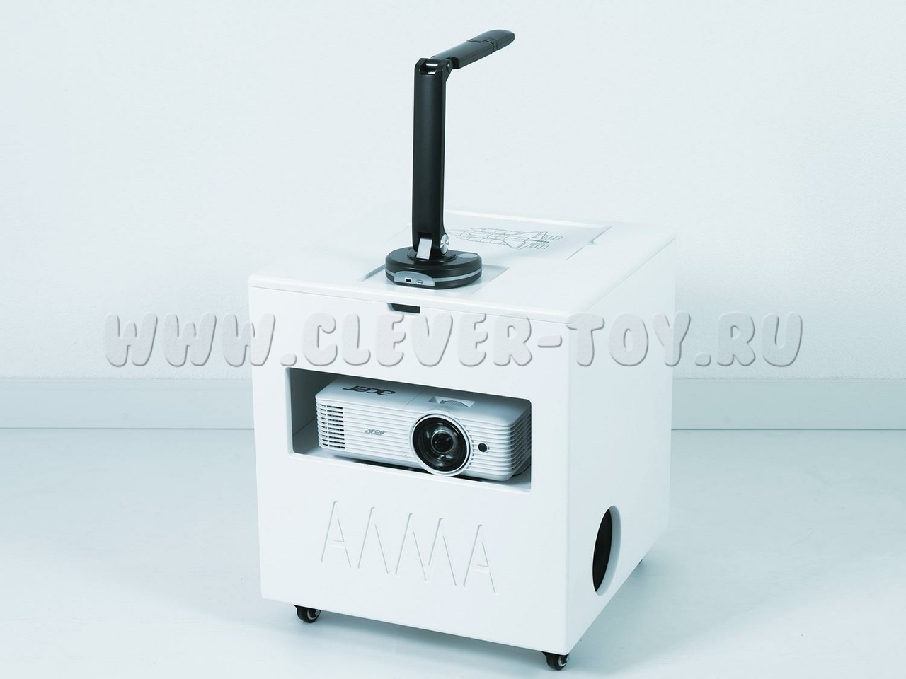 Благодаря подвижной платформе и компактным размерам оборудование легко перемещать между помещениями, а яркий проектор позволяет выводить изображение на различные поверхности.