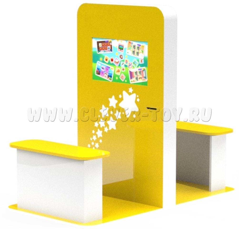 Двусторонний напольный комплекс "Радуга" Дуэт оснащен 2 антивандальными сенсорными мониторами. При своих небольших габаритах позволит разместить сразу несколько ребят на специально подобранных по высоте, стульчиках с высококачественным шумопоглощающим и противоскользящим покрытием.