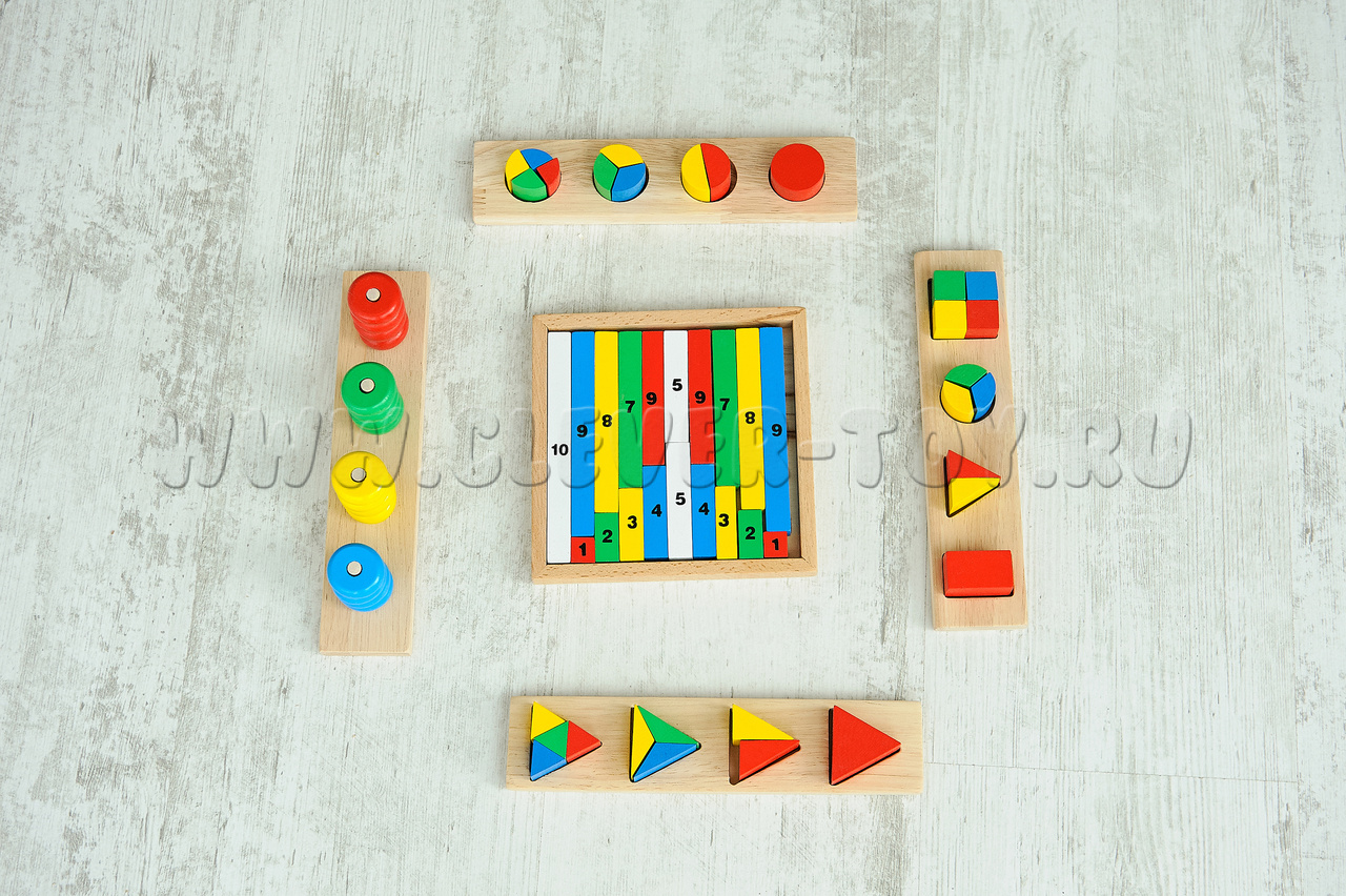 Разработан по методике Марии Монтессори. Соответствует ГОСТ, ФГОС, подходит для детских садов, коррекционной и реабилитационной работы, подготовки к школе.
