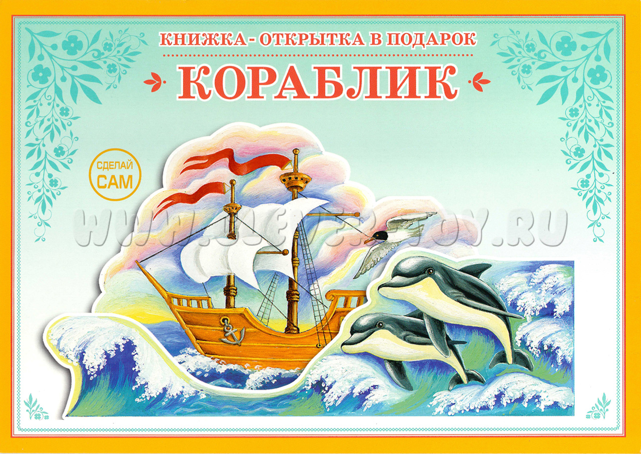 3D объёмная открытка-книжка для детского творчества "Кораблик".