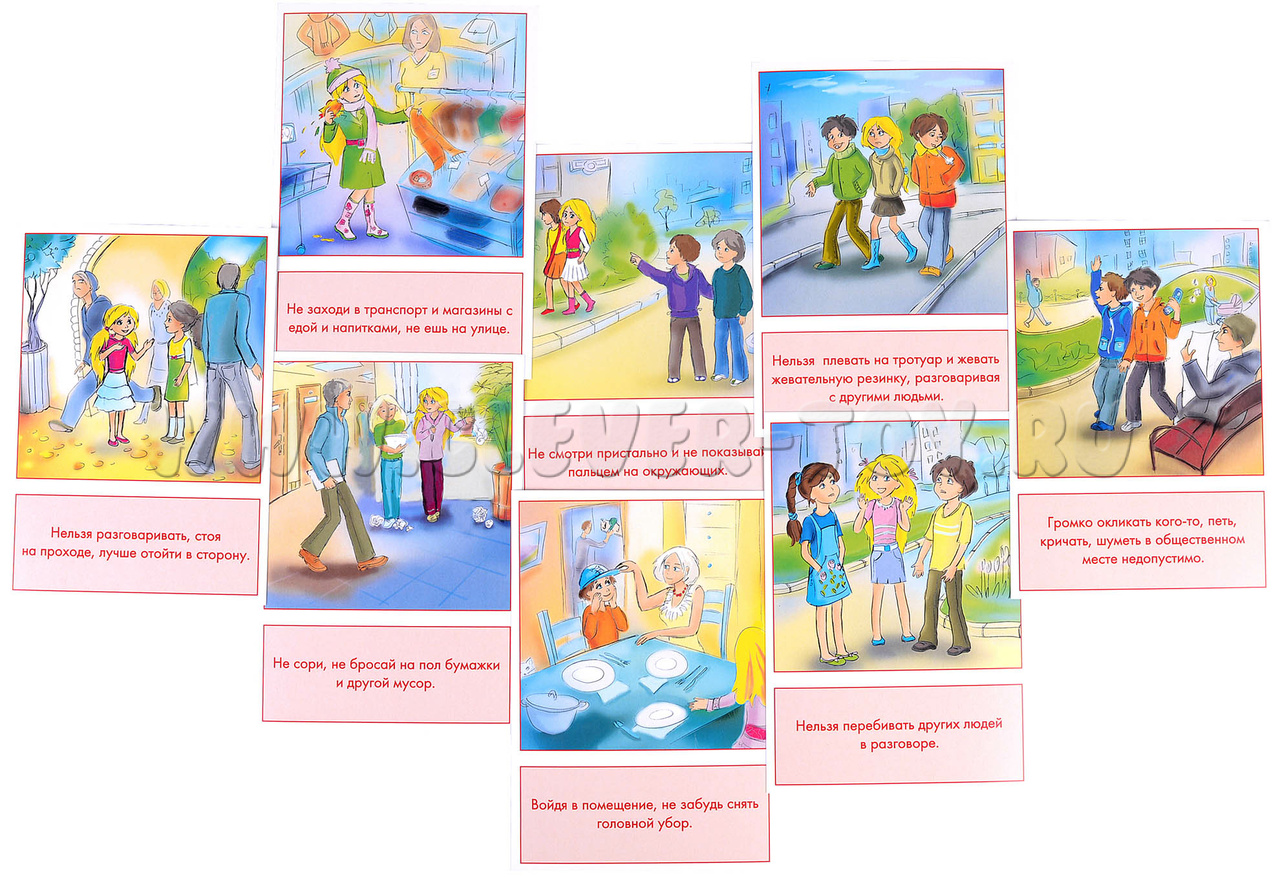 Дидактические карточки "Правила поведения" адресованы воспитателям ДОУ, логопедам, психологам, учителям начальных классов и родителям для занятий с детьми старше 3 лет и нацелены на формирование у детей: