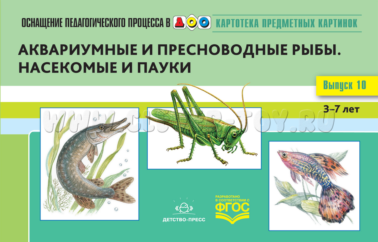 Картотека предметных картинок 10. Аквариумные и пресноводные рыбы. Насекомые и пауки. 3-7 лет. ФГОС.