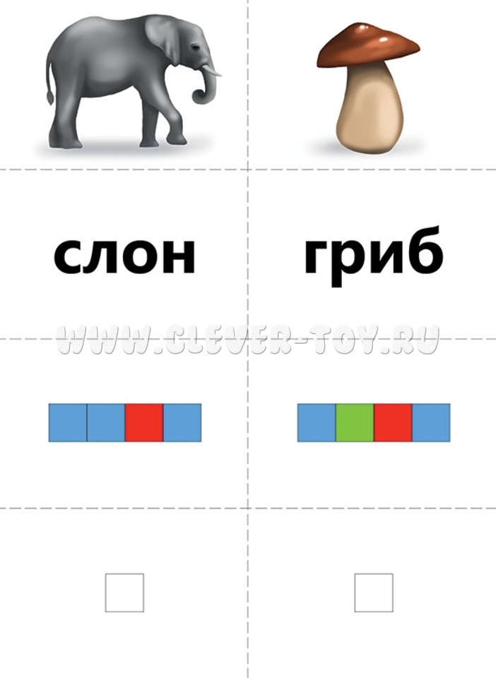 - Это игра для индивидуальных и/или групповых занятий. Цель игры: подобрать слово и две схемы (звуковую и слоговую) к каждой из картинок. Если участвует группа детей, карточки с картинками (картинки можно заменить на слова) раздаются игрокам поровну, а ведущий начинает показывать поочередно карточки со словами (картинками) и схемами. Подходящие карточки участники забирают себе, побеждает тот, кто быстрее и правильнее всех соберет свои карточки;