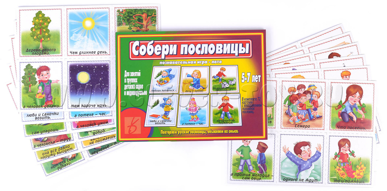 Игра-лото для детей 5-7 лет.С помощью этой игры дети повторят русские народные пословицы,и научатся объяснять их смысл.