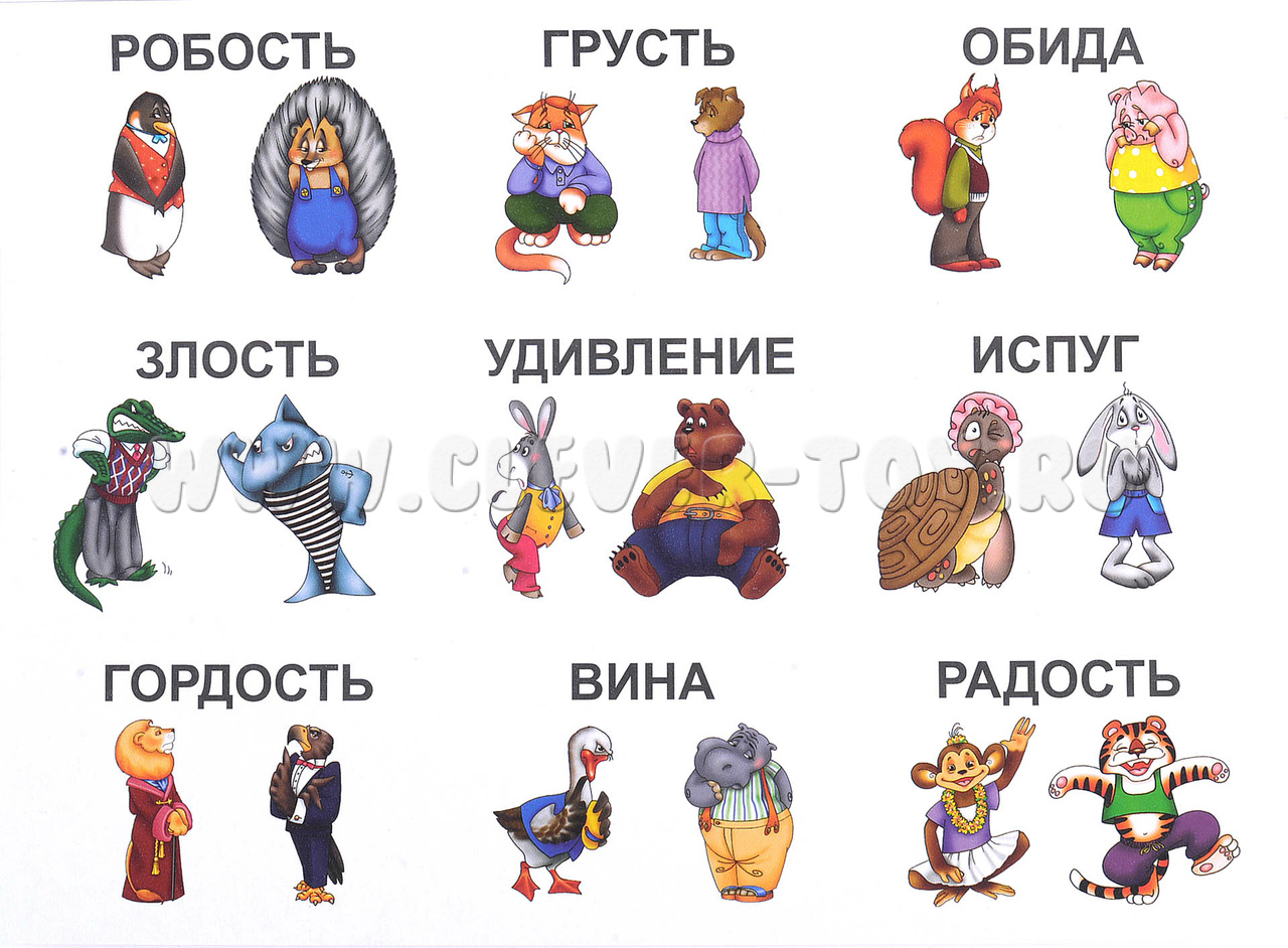 - Придумай причину. Ведущий показывает карточку, а дети называют эмоцию и придумывают ее причину. Самый интересный ответ вознаграждается карточкой.