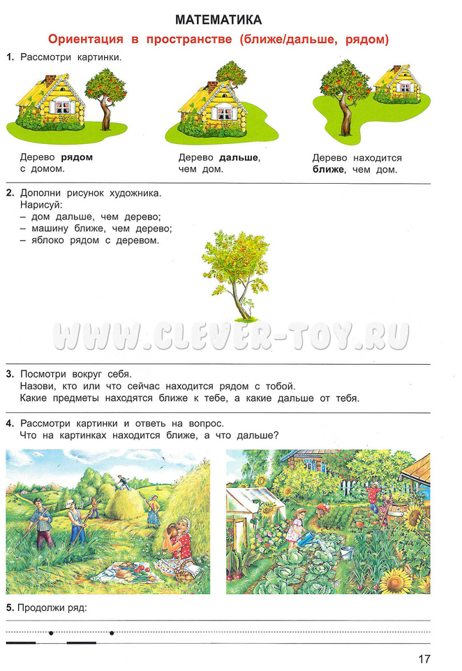 • Ориентация в пространстве (ближе/ дальше/ рядом).