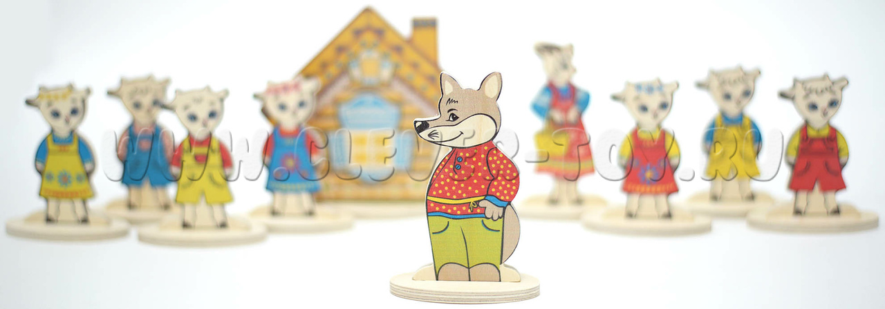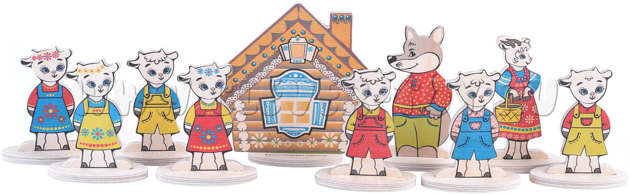 Набор деревянный "Персонажи сказки Волк и семеро козлят"