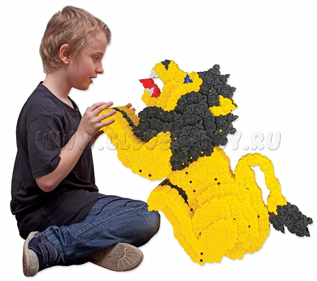 Побывать в фантастическом мире великанов Вашему ребенку поможет большой конструктор Морфан! Ребенку предлагается самостоятельно собрать огромную модель льва или тираннозавра рекса. Конструктор состоит из деталей квадратной и треугольной формы, соединительных, направляющих и дополнительных элементов для сборки разнообразных 2D и 3D объектов живой и неживой природы. Уникальный способ соединения деталей по шести направлениям, предоставляет неограниченные возможности для развития фантазии ребенка! Занятия с конструктором отвлекают современных детей от виртуального мира, захватывая их увлекательными играми и реальными игрушками на долгое время.