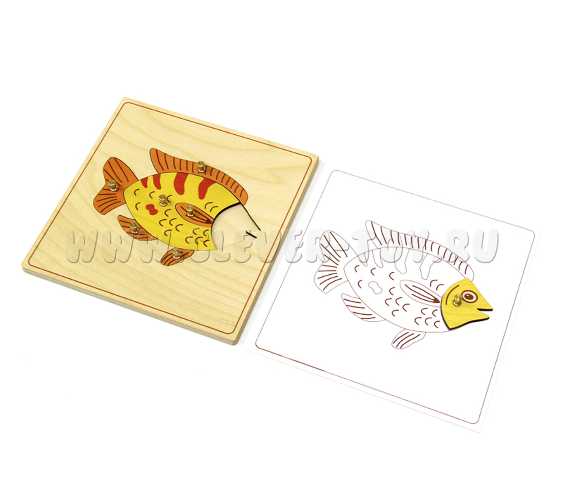 Знакомство со строением рыбки путем составления целого из частей и проговаривания их названий способствует развитию речи, увеличению словарного запаса и формированию восприятия формы.