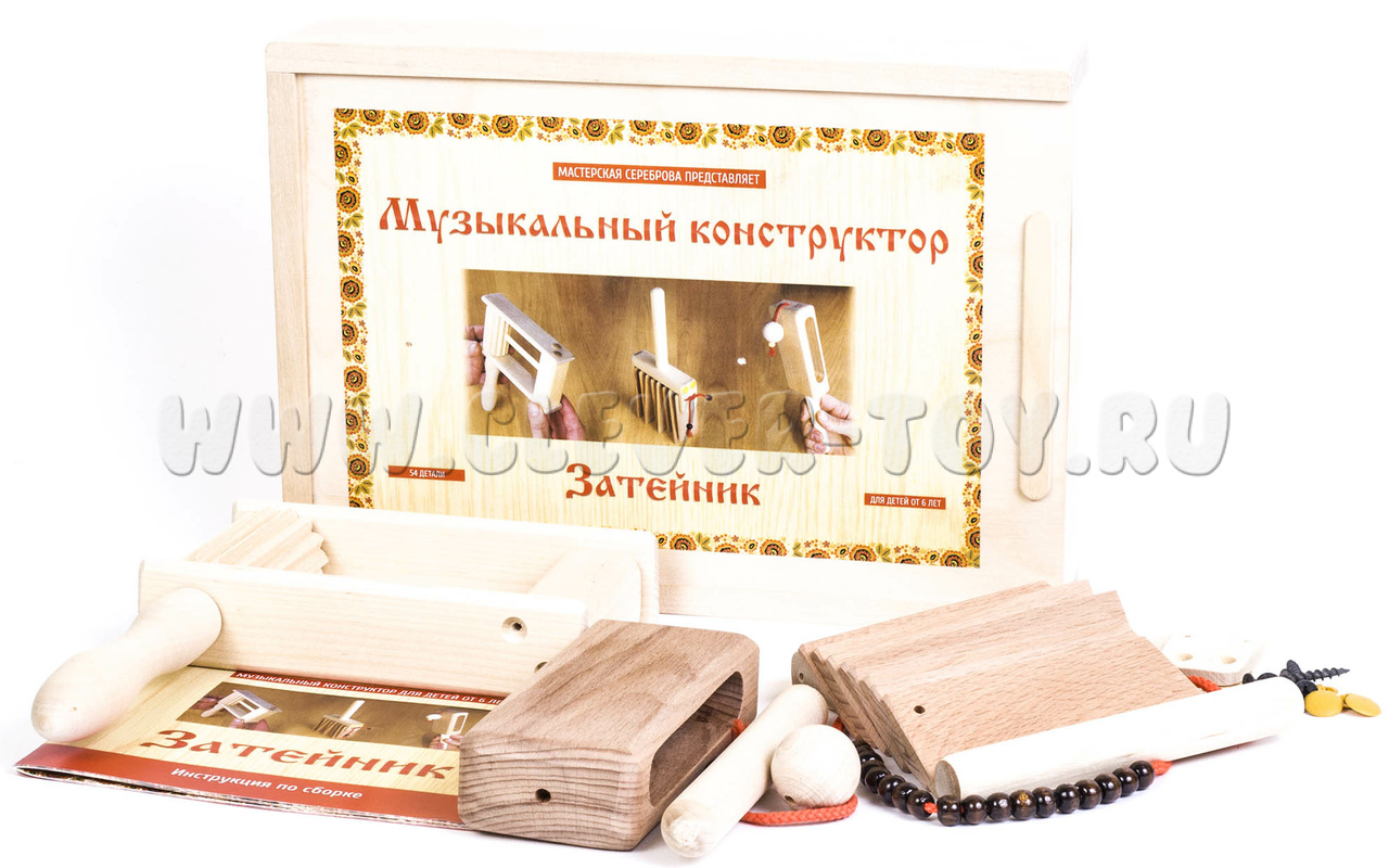 Раньше в народе, для того, чтобы развеселиться, привлечь внимание или даже отпугнуть, использовали шумовые инструменты. Шумовые инструменты относятся к одним из самых древних видов. Они создавались из подручных инструментов (кожи, костей, дерева, глины, а позже железа) и им приписывали магические силы. В нашем музыкальном конструкторе, как раз собраны одни из самых популярных шумовых инструментов, ими можно не просто играть, но и стать их полу создателем. Запакован набор в аккуратную деревянную коробочку, а в ней находится инструкция по сборке и разобранные инструменты: колотушка, трещотка пластинчатая и трещотка пластинчатая с ручкой. Таким набором можно играть всей семьей, тем самым продуктивно проводить семейные вечера и становится еще ближе и счастливей.