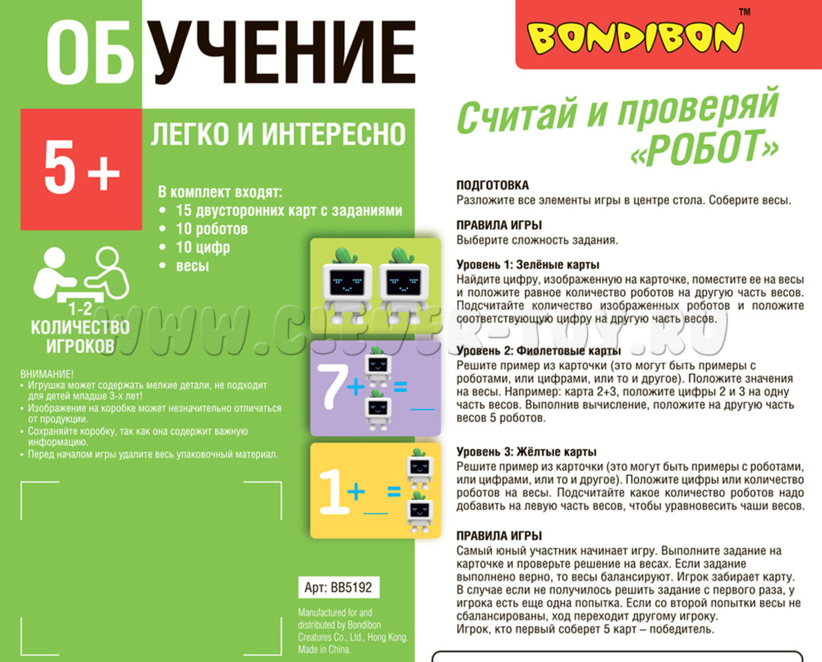 Обучающая игра "Считай и проверяй. Робот" (весы)