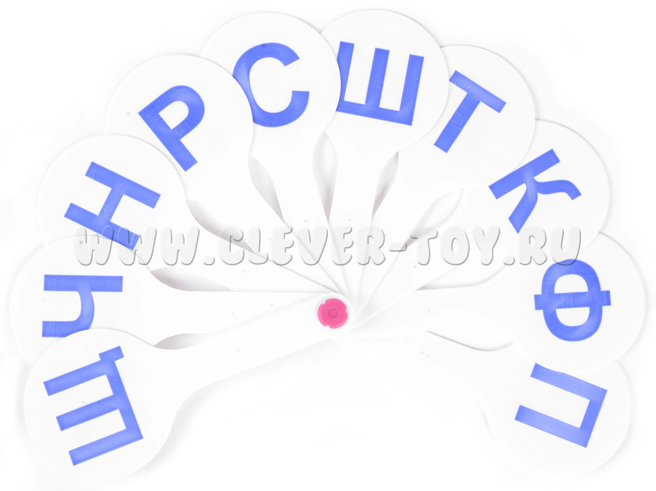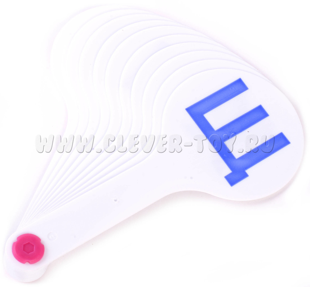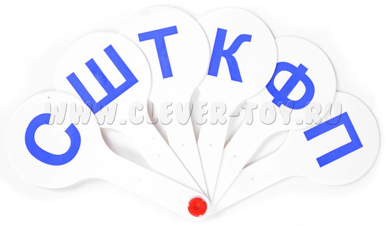 Всего на веер 10 движущихся элементов. На каждом элементу нанесена согласная буквы крупным печатным шрифтом.