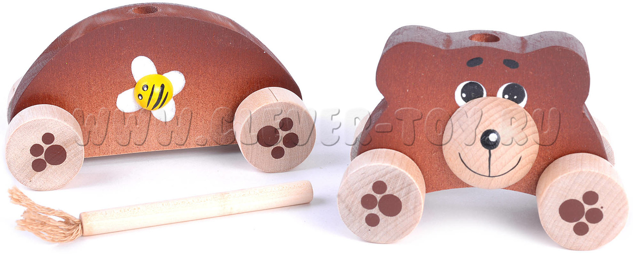 Верхняя часть игрушки снимается, и получаются две машинки. Соединяются части с помощью деревянного дюбеля (75 мм).