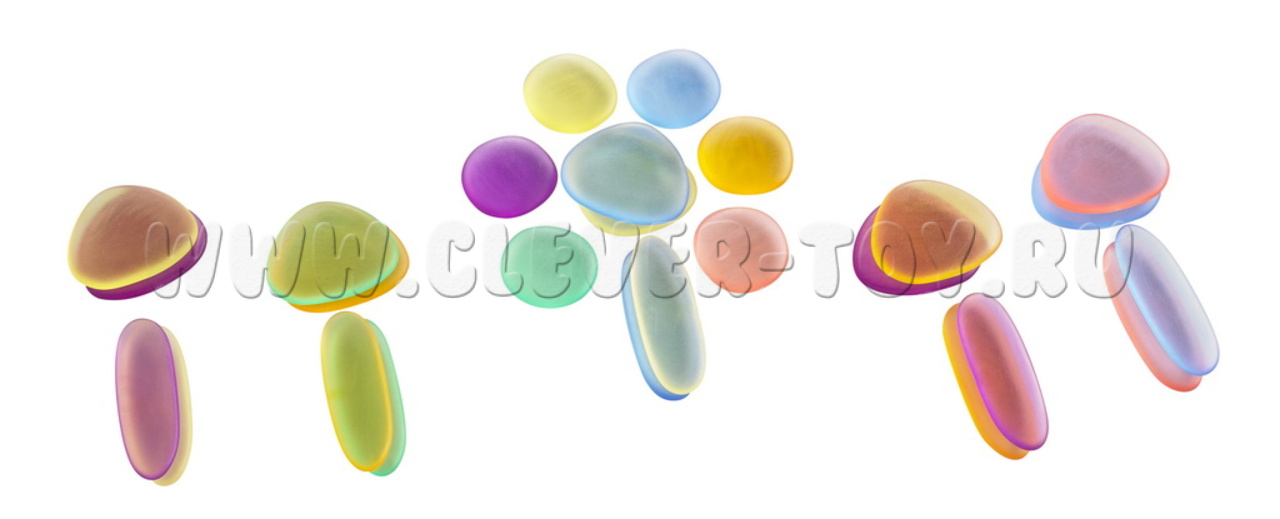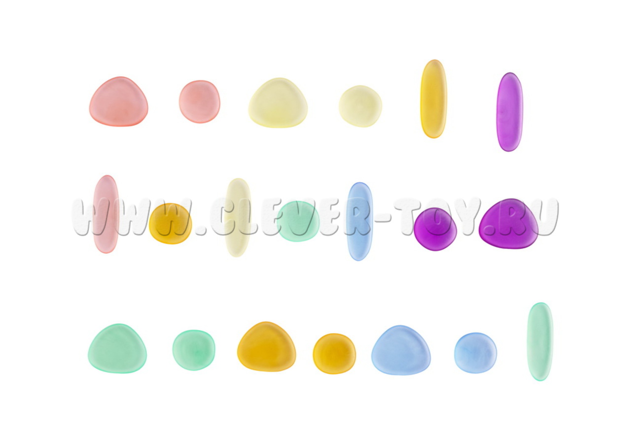 "Радужные камешки" способствуют сенсорному, социально-коммуникативному, познавательному, речевому и физическому развитию, а также оказывают положительное влияние и на психику ребенка. Набор знакомит со счетом, цветами, понятиями размера и равновесия. Используется для индивидуальных и групповых занятий.