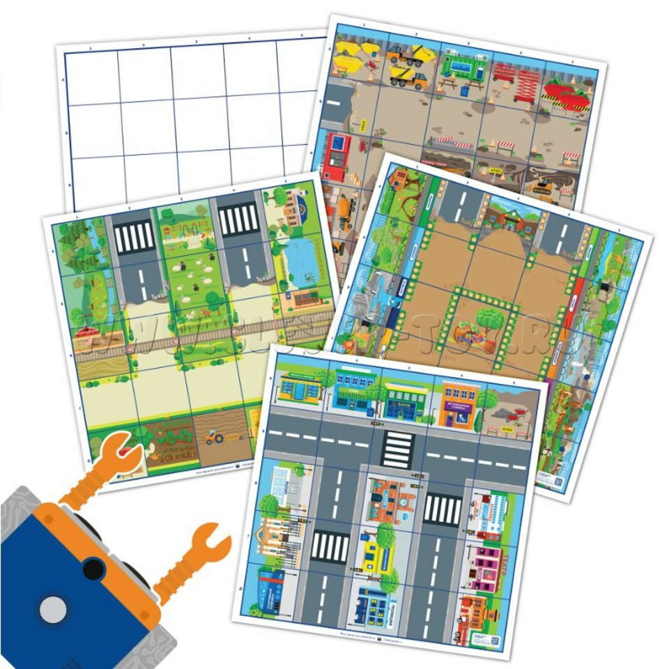 Комплект тематических полей представляет собой многофункциональное дополнение к обучающим роботам Ботли и Ботли 2.0. Образовательный набор позволяет детям осваивать основы программирования и кодирования через интерактивное изучение окружающего мира в четырех ключевых направлениях: