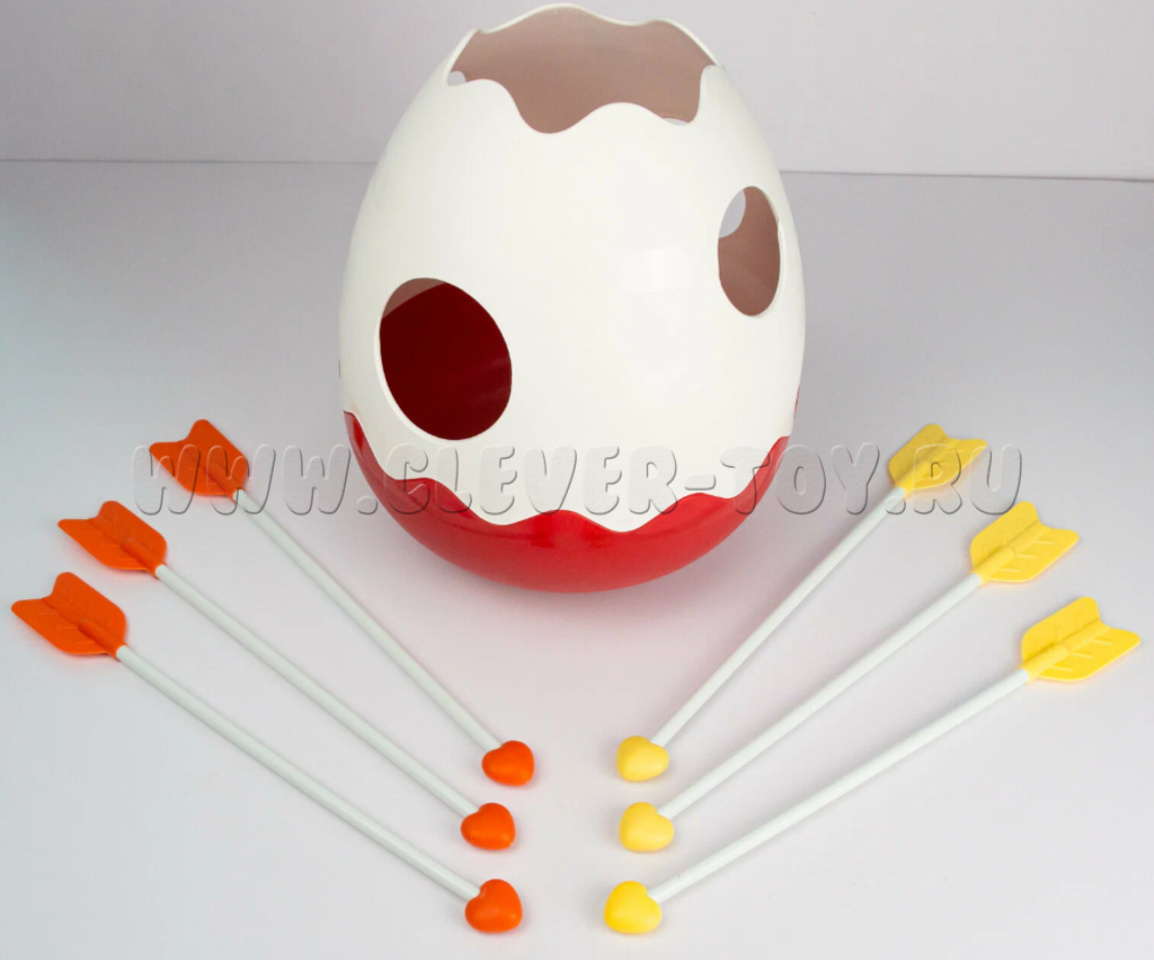 Игровой набор для метания, представлен в виде яйца и стрел.