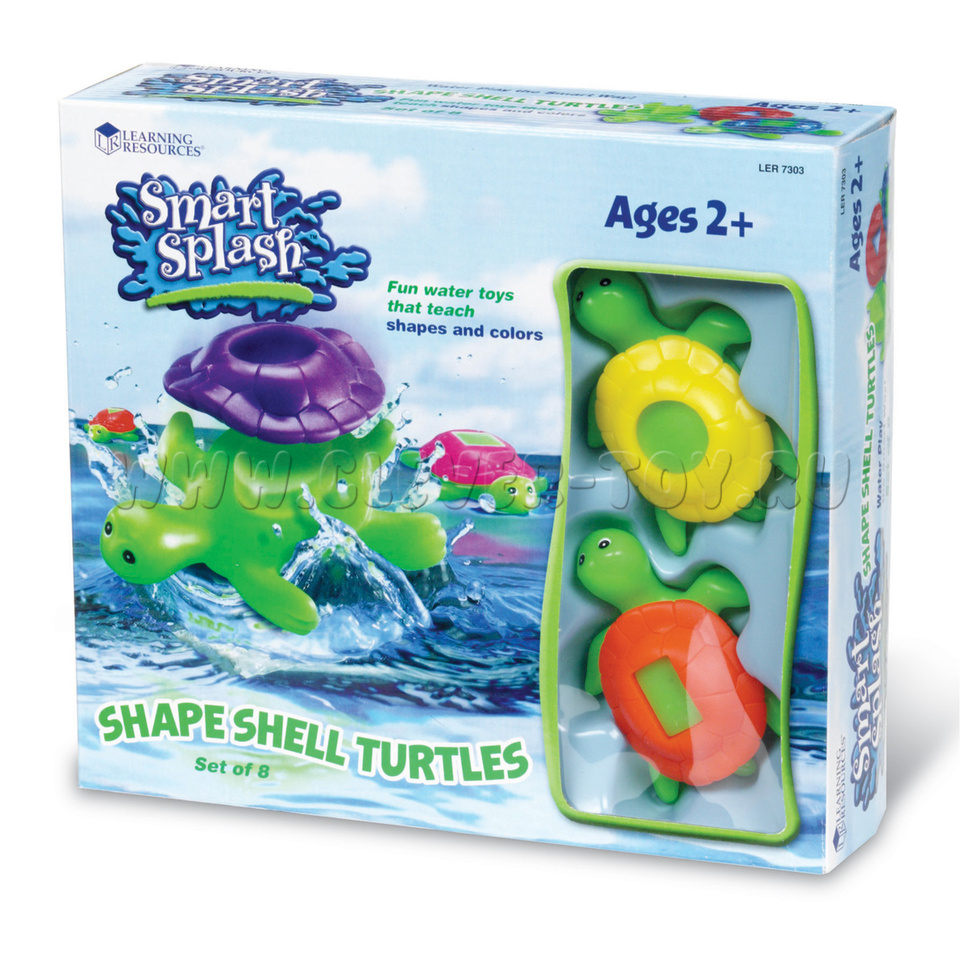 Каждая черепашка с разной формой на спинке и такой же формы отверстие на цветных съмных панцирях: луна, звезда, крест, круг, квадрат, прямоугольник, треугольник и овал.