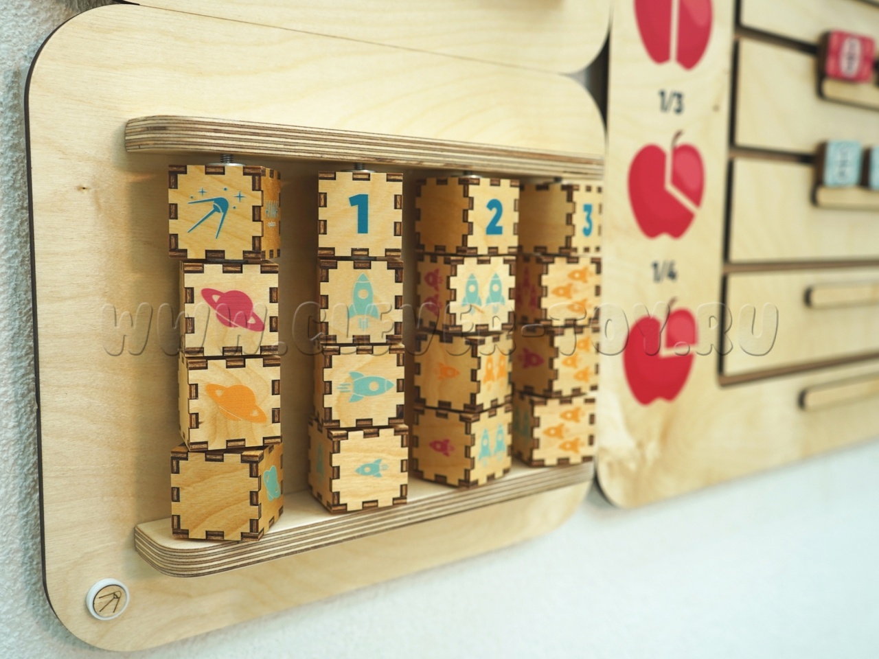 Дидактическая панель изготовлена из натуральных материалов и безопасна для использования детьми. Оснащена надежной скрытой системой креплений.